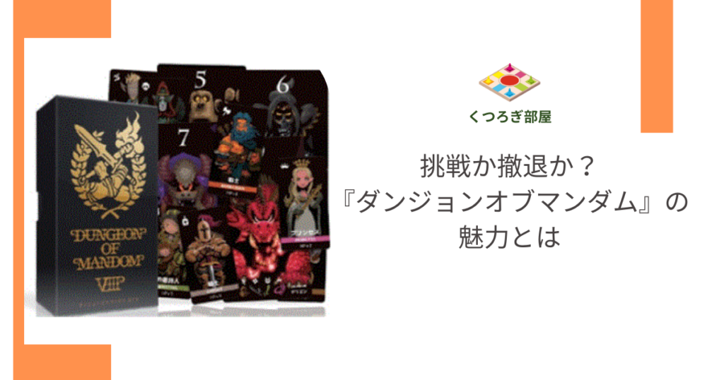 『ダンジョンオブマンダム』とは?基本情報とルール概要 『ダンジョンオブマンダム』は、プレイヤーがダンジョンに挑む勇者となり、装備を削りながらどこまで進めるかを競うチキンレース型のボードゲームです。シンプルなルールながら、ブラフや読み合い、... -